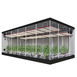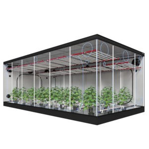 OCRDas OCR XXL Premium 600 Growzelt mit 300x600x225 cm ist ein extrem geräumiges, professionelles Growzelt mit einem 25 mm Heavy-Duty-Rahmen, der bis 120 kg belastbar ist. Ausgestattet mit dickem 1680D Mylar mit Diamond-Reflexion und einem wasserdichten 0,6 mm PVC-Boden. Entwickelt für großflächige, intensive und kommerzielle Anbausetups.