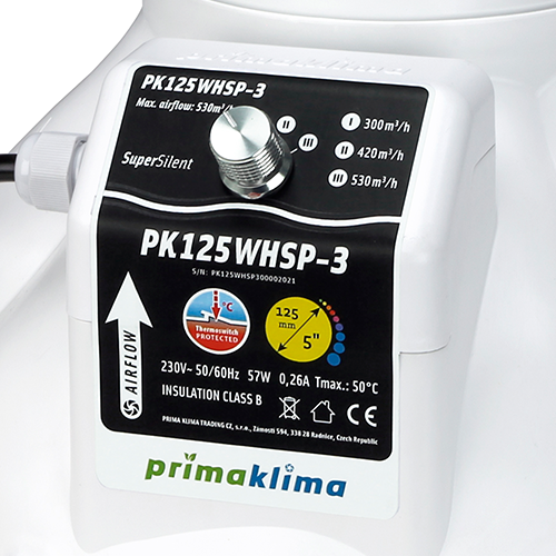 PrimaKlima Whisperblower Ø125mm 3-Stufen - 530 m³/h - Rohrventilator
