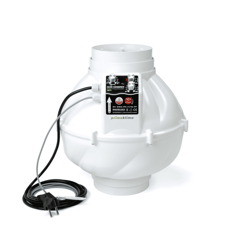 PrimaKlimaPrimaKlima Whisperblower EC Ø150/160mm - Temp.-Steuerung: Leistungsstarker Lüfter mit 1400 m³/h, leise, energiesparender EC-Motor, integrierte Temperaturregelung. Perfekt für Growboxen und industrielle Anwendungen.