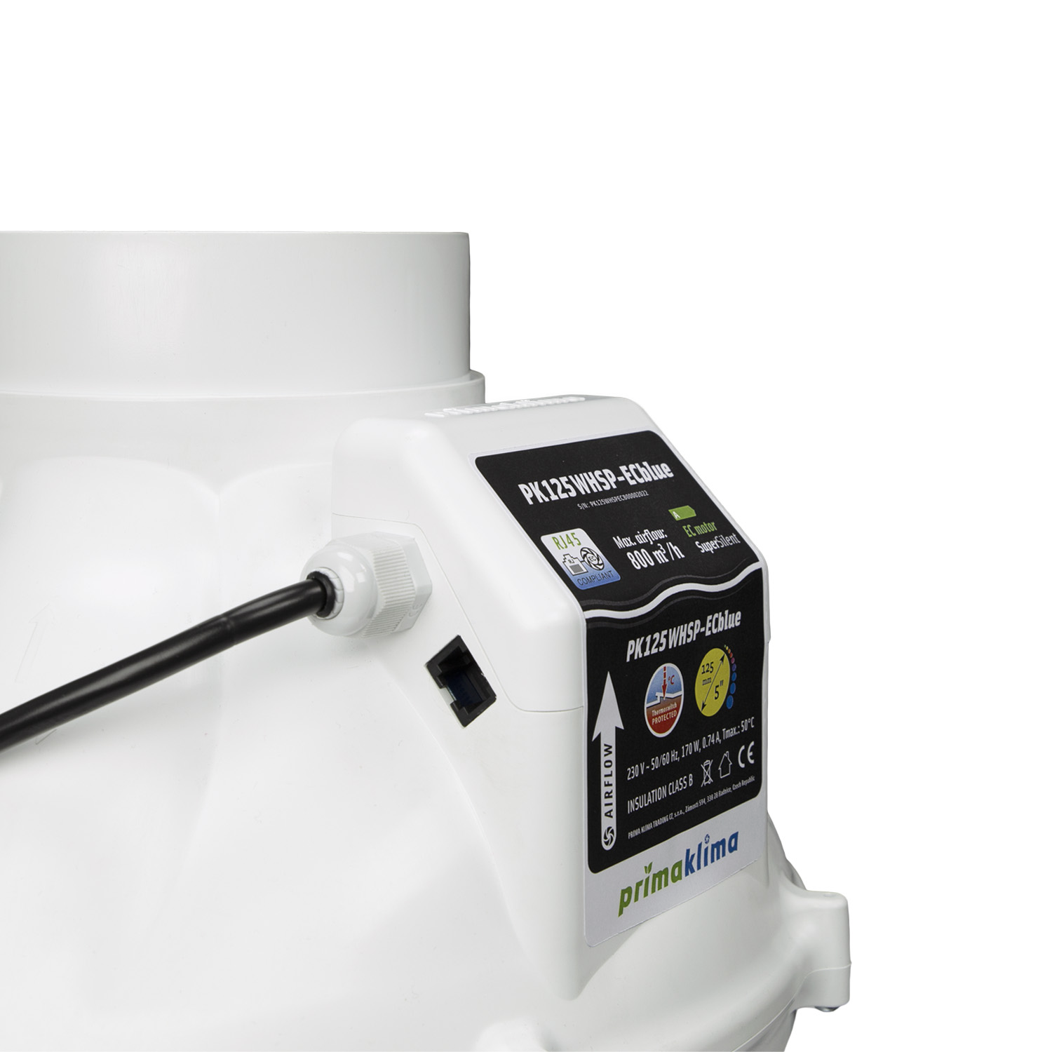 PrimaKlima Whisperblower ECBlue - Ø125mm - 0 bis 800 m³/h - RJ45-Anschluss