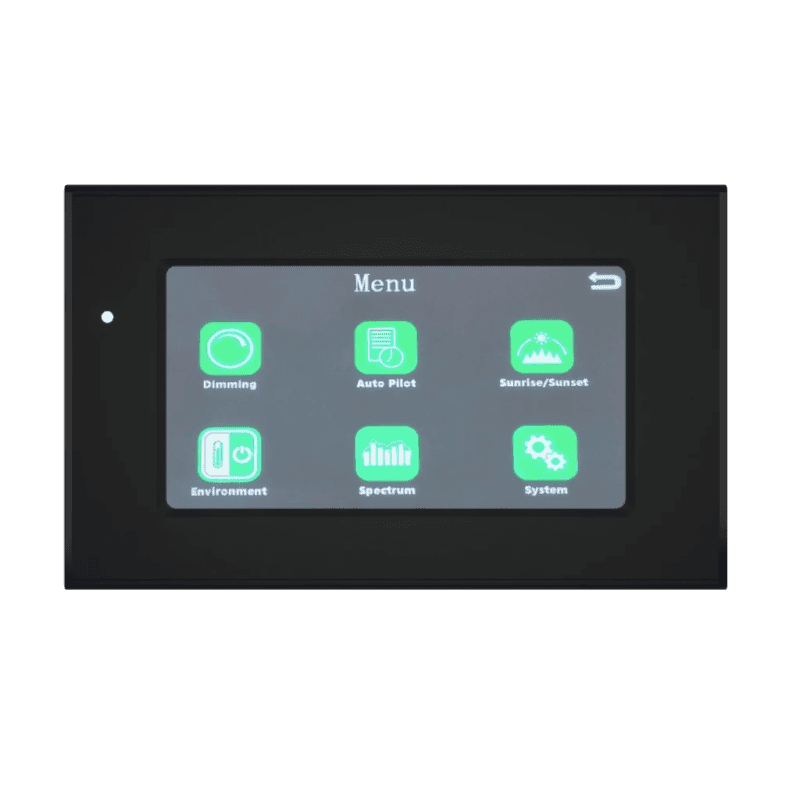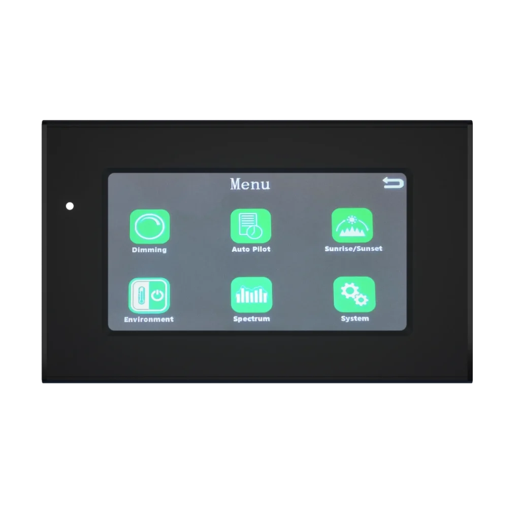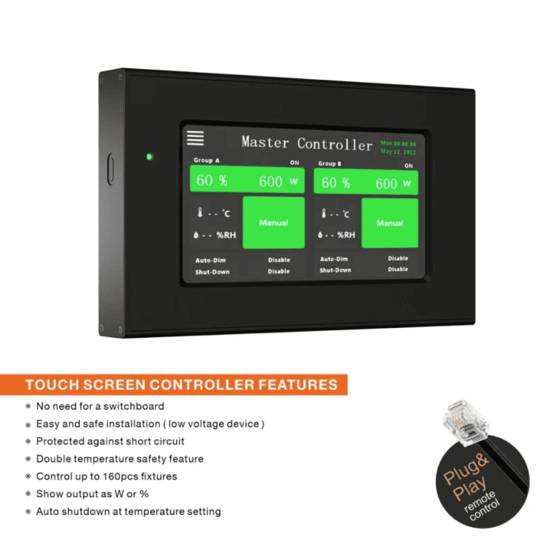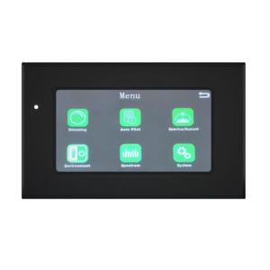 Der integrierte Touchscreen ermöglicht eine einfache und schnelle Bedienung. Lichtzyklen, Tagesprogramme, Countdown-Timer und automatische Abläufe lassen sich komfortabel einstellen und überwachen, selbst bei umfangreichen Installationen mit vielen Leuchten.