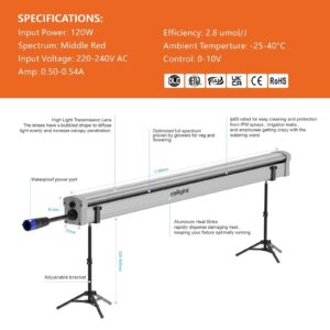RalightRalight Under Canopy LED Bar 120W bietet effiziente Unterbeleuchtung. Medium Red Spectrum, 336 μmol/s, dimmbar, energieeffizient. Ideal für optimales Pflanzenwachstum, höhere Erträge. Perfekt für schmale Räume, kompatibel mit Ralight-Controllern.