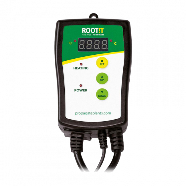 Der ROOT!T Thermostat wurde speziell für die Verwendung mit einer ROOT!T Heizmatte entwickelt und ist ideal, um optimale Wachstumsbedingungen in einem Gewächshaus zu schaffen. Mit dieser Thermostatsteuerung bleibt die Temperatur immer im gewünschten Bereich, sodass Ihre Pflanzen bestens gedeihen können.