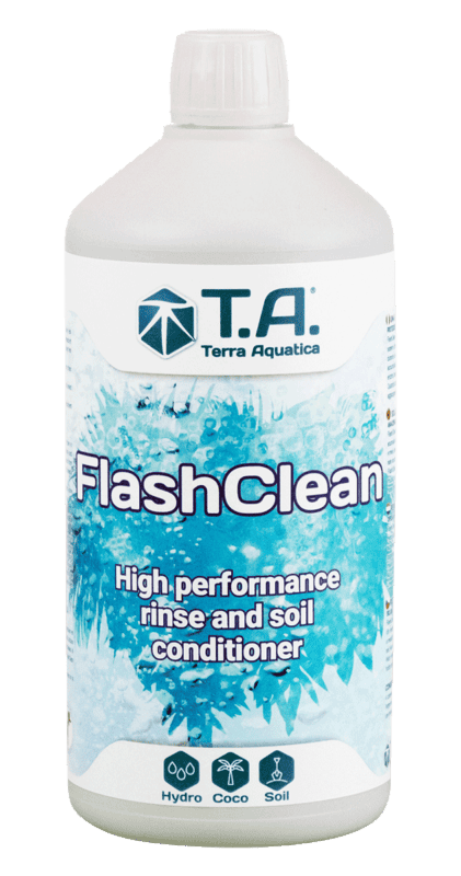 Terra AquaticaTerra Aquatica FlashClean 1 L löst Salz und Nährstoffablagerungen in Erde, Hydro und Kokos schnell auf. Ideal bei Überdüngung, für saubere Spülphasen und zur Reinigung zwischen Anbauzyklen.