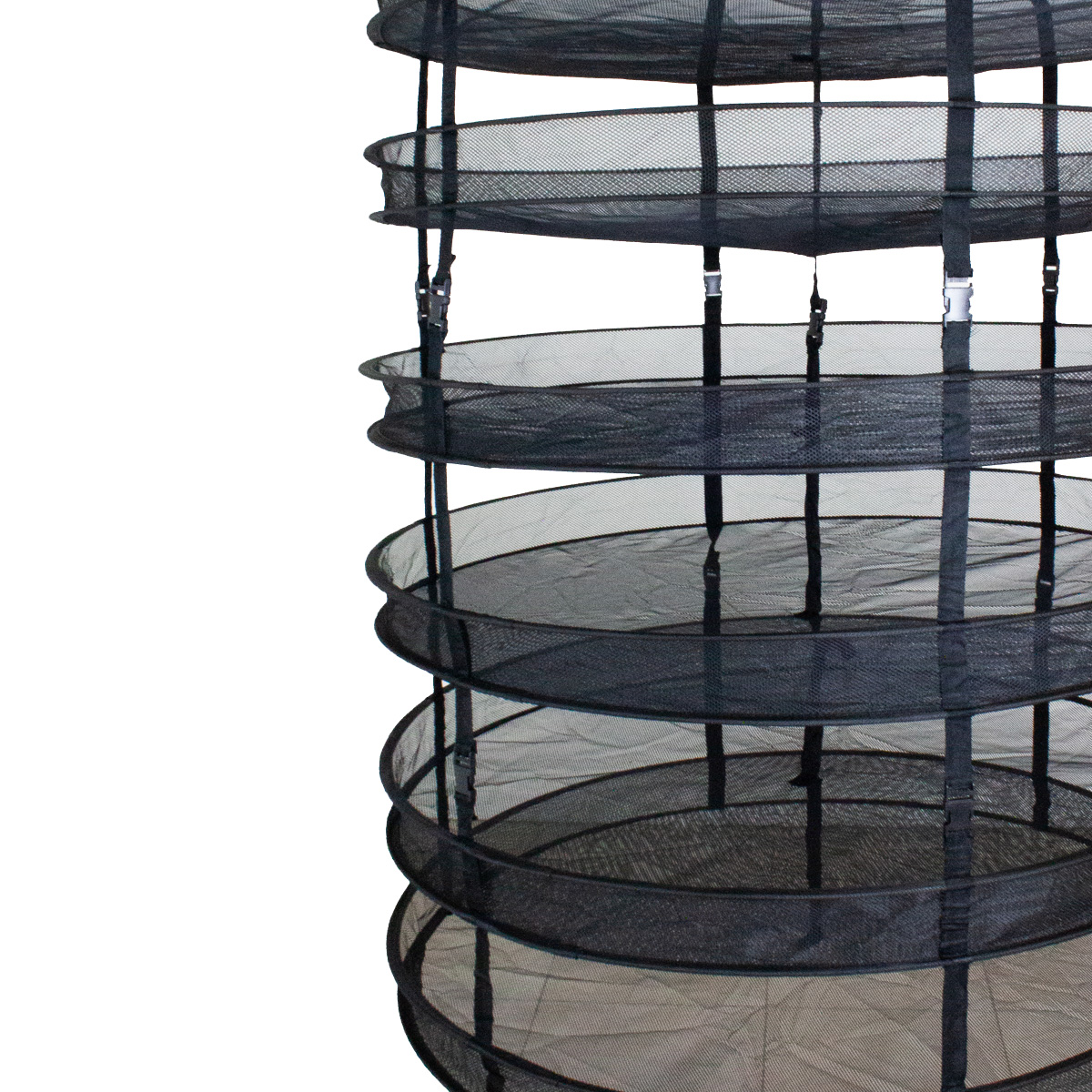 Dieses vielseitige Trockenetz ist ideal für das effiziente Trocknen Ihrer Pflanzen, Kräuter oder Blumen. Mit einem Durchmesser von 90 cm und sechs geräumigen Ebenen bietet dieses Netz ausreichend Platz, um große Mengen gleichzeitig zu trocknen. Das clevere Clipsystem ermöglicht es Ihnen, die unteren vier Ebenen einfach zu entfernen, sodass Sie das Trockenetz in eine kompakte Version mit zwei Ebenen umwandeln können. Dadurch ist das Netz flexibel einsetzbar, je nach Ihren Trocknungsanforderungen.