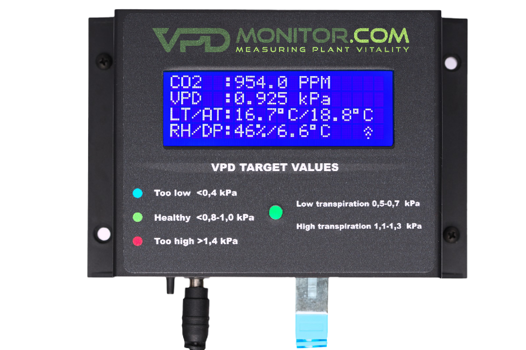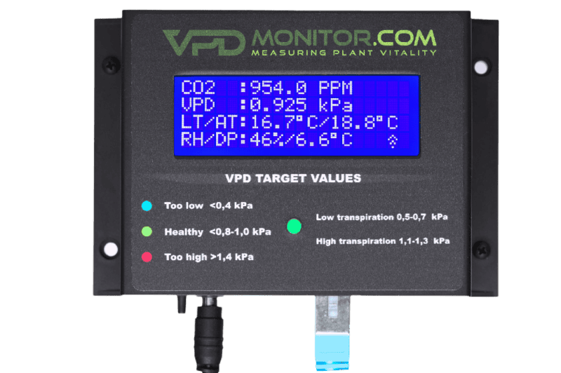 Die VPD Monitor ist ein Gerät, das das Pflanzenwachstum überwacht. Es hat Sensoren, die messen, wie viel Wasser in der Luft ist, wie kalt es ist, wie viel CO2 vorhanden ist und wie feucht die Luft ist. Es kann online und offline arbeiten. Mit diesem Gerät kannst du sicherstellen, dass deine Pflanzen besser wachsen und gesund bleiben.